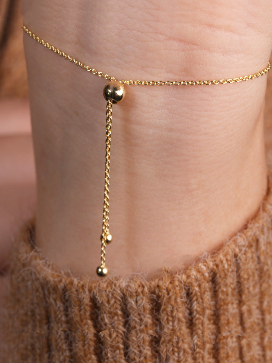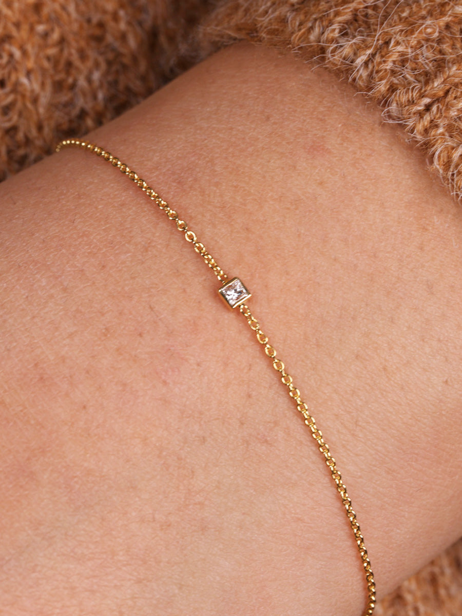 Delicate yet dazzling, a single Princess Cut diamond sits on the wrist. The length of the bracelet can be adjusted from 6 to 8.5 inches to suit individual preference.