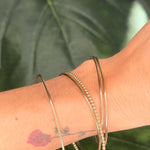 Experience the rich tradition of the gold bangle, handcrafted in Chico, CA. Create a meaningful journey through the years by adding a bangle for each anniversary or building a stack to display your unique story. The gentle tinkling of multiple bangles will accompany you on all your adventures!