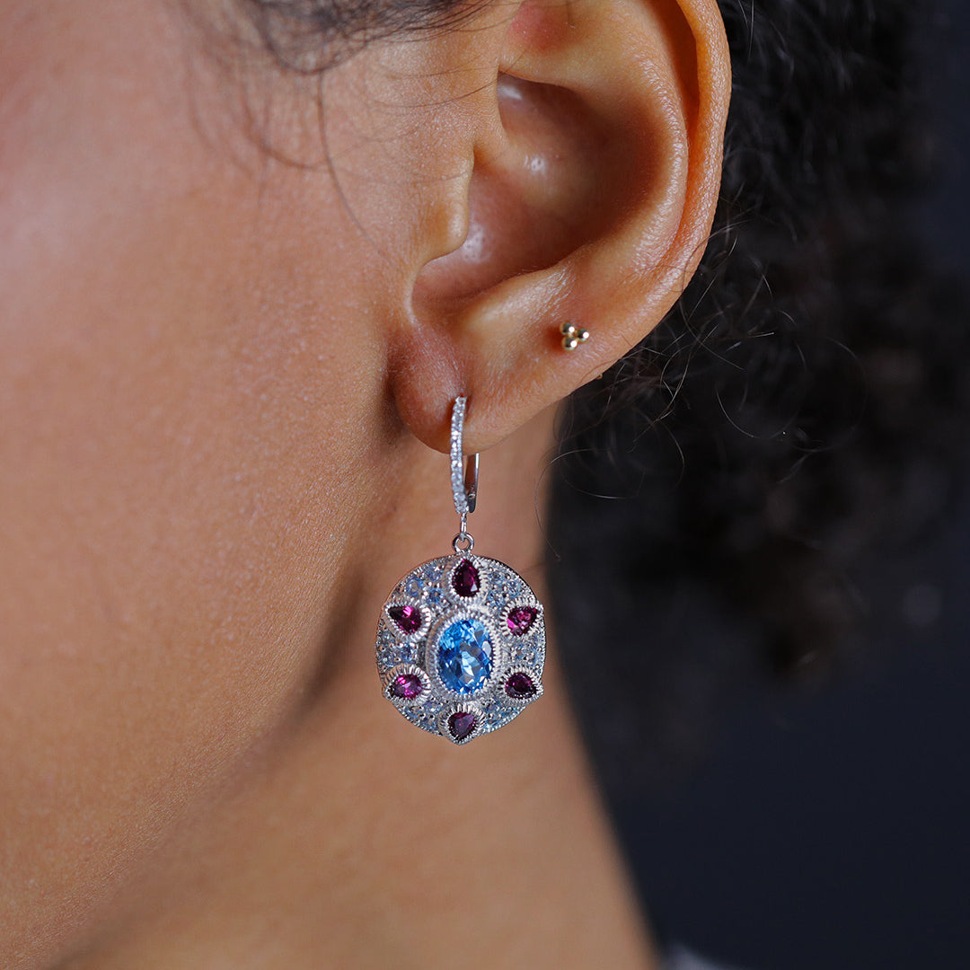 Mixed cut Topaz,Garnet & Diamond Dangles