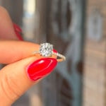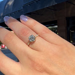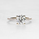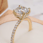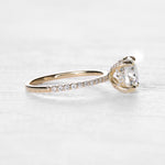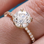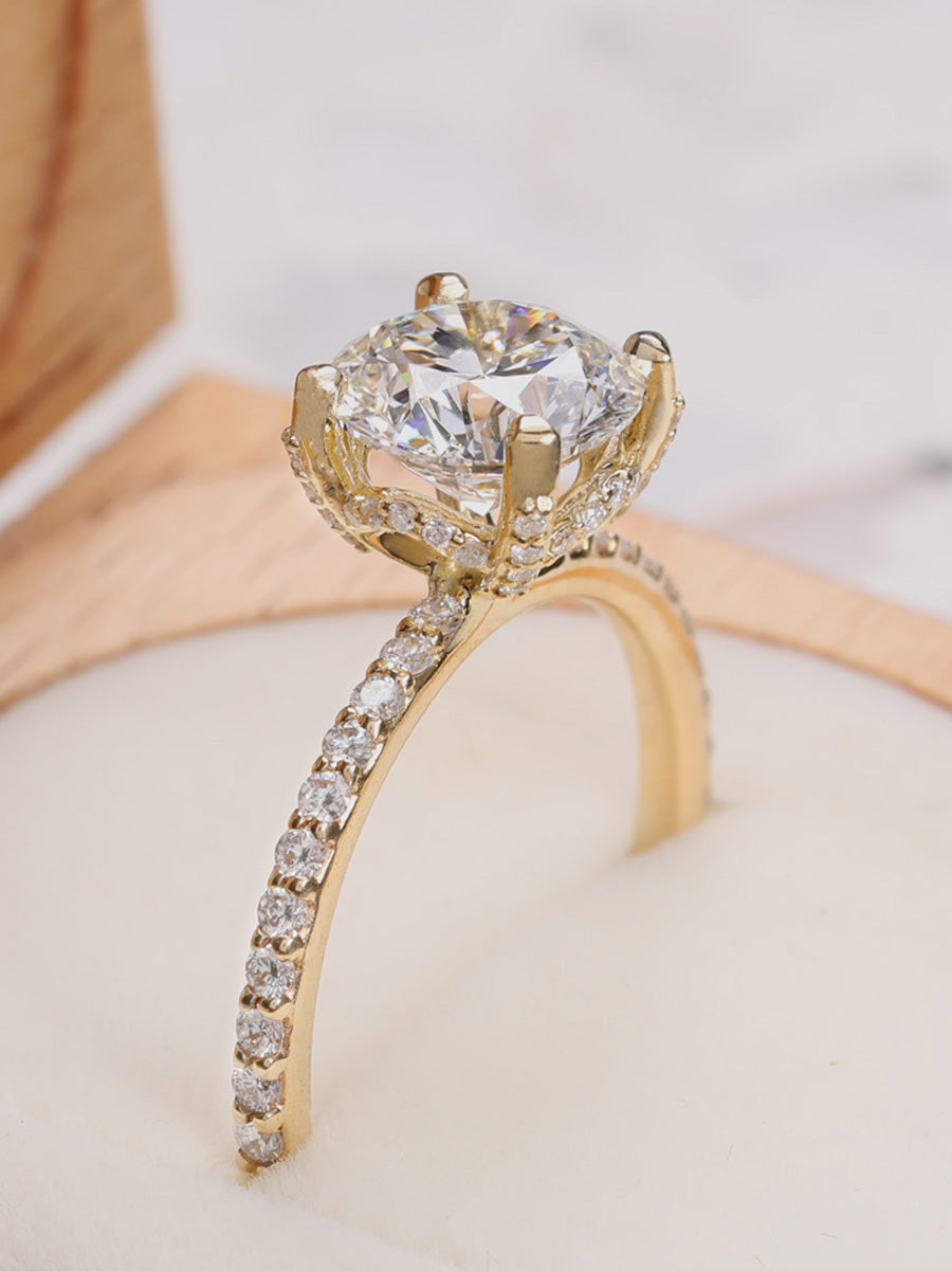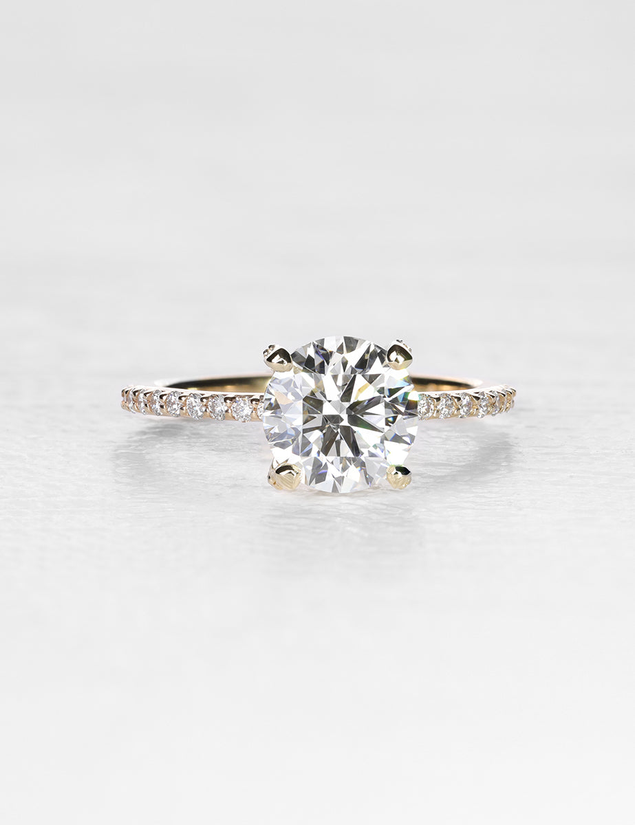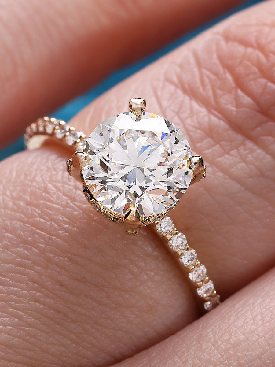 Juliet showcases the focal stone with hidden diamond details in the basket and sparkling band.