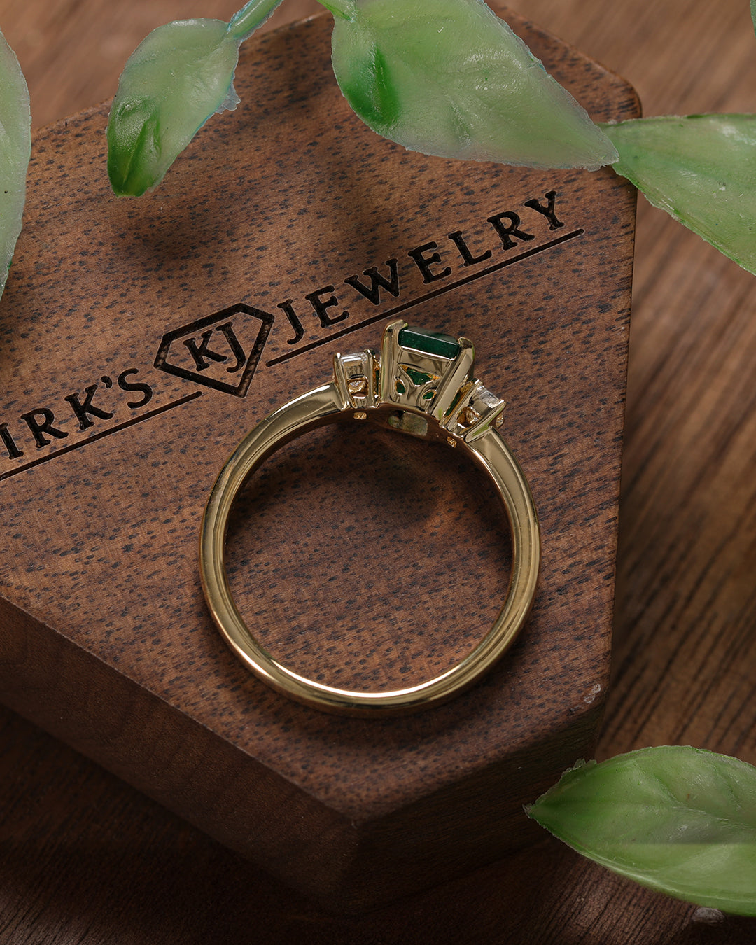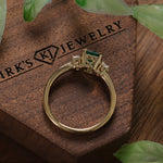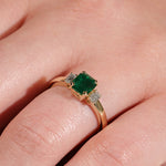 Vivid emeralds are paired with sparkling diamond accents for a timeless pop of color in warm 18 karat yellow gold
