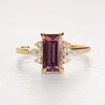 Experience the vibrant plum color of Verbena with Baguette Sapphire as it catches the light with every gesture, reminiscent of a fine aged wine.