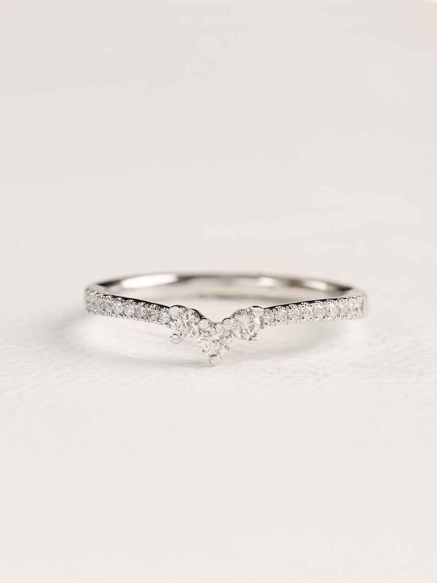 A row of glistening diamonds meet at a point in this captivating ring, perfectly styled to encircle any engagement ring.