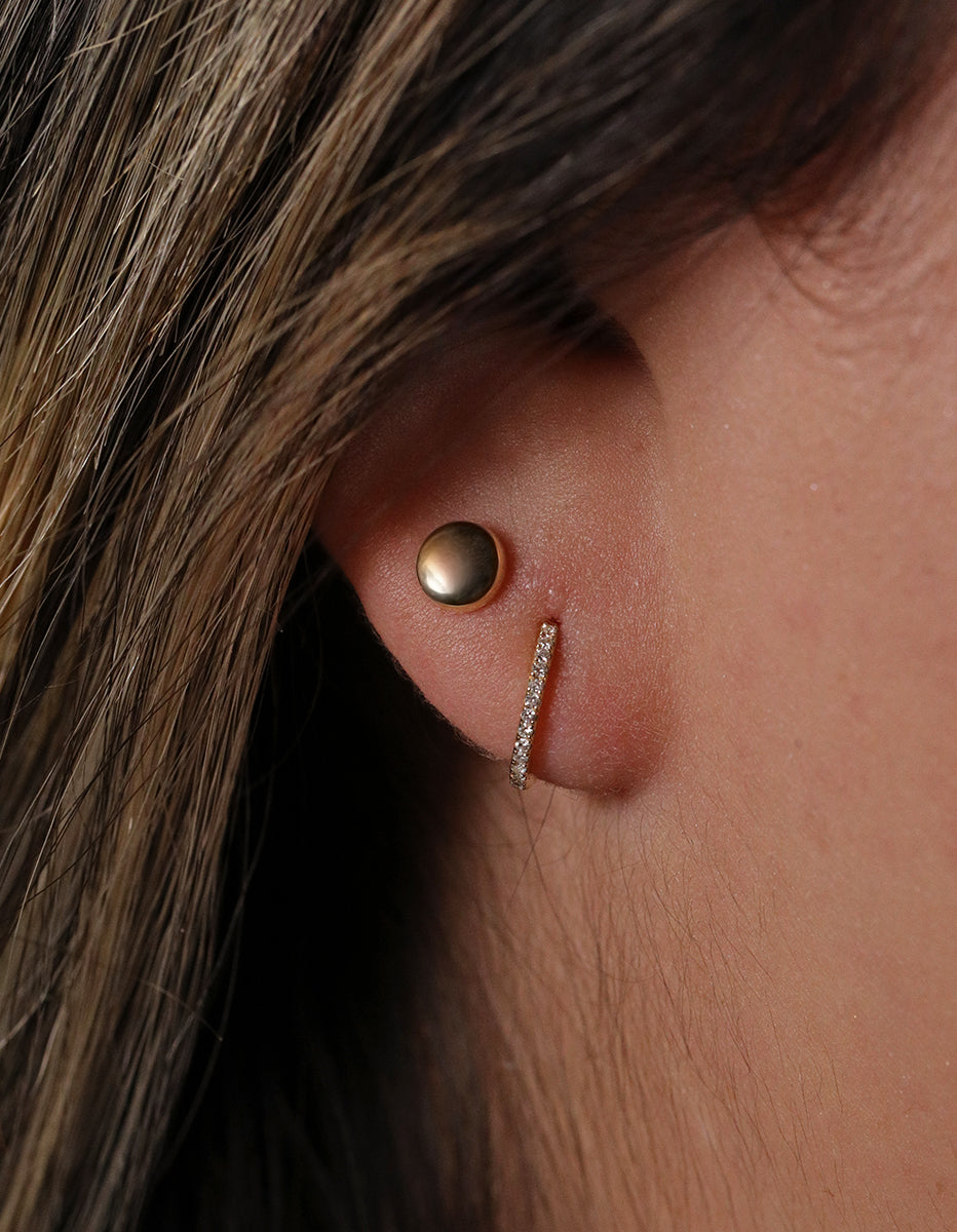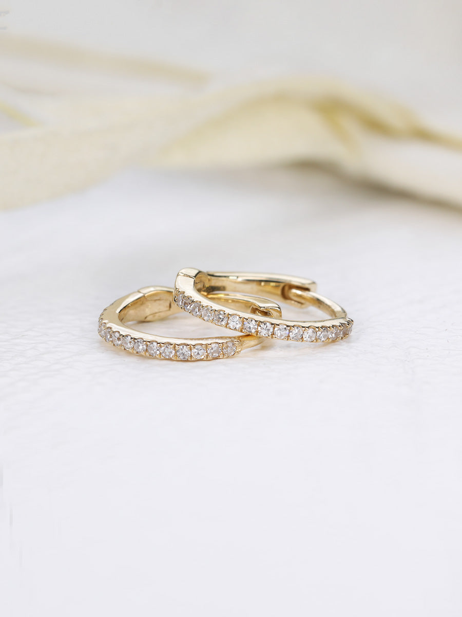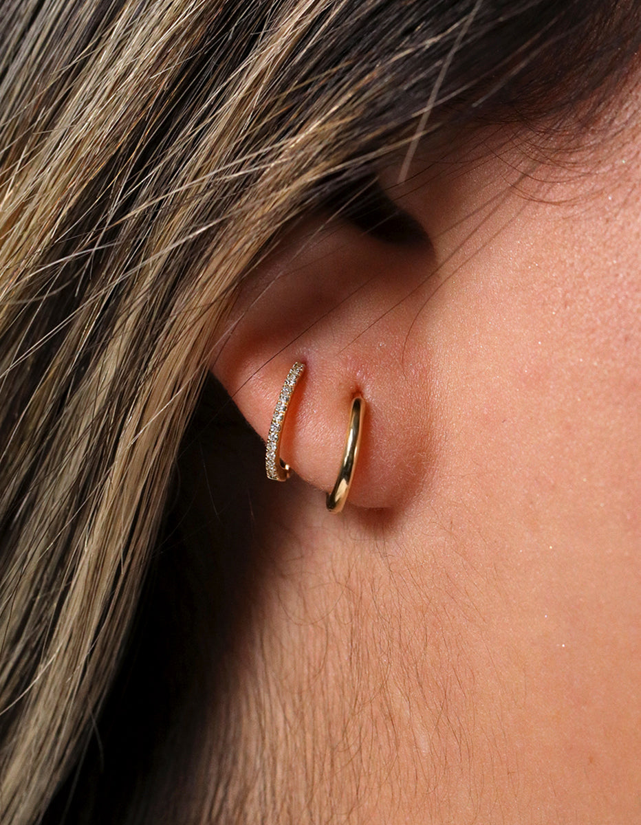 This pair of Diamond Huggies is sure to make a statement with its dazzling diamonds perfect for first, second, and third piercings. The perfect diamond earring for everyday and beyond.
