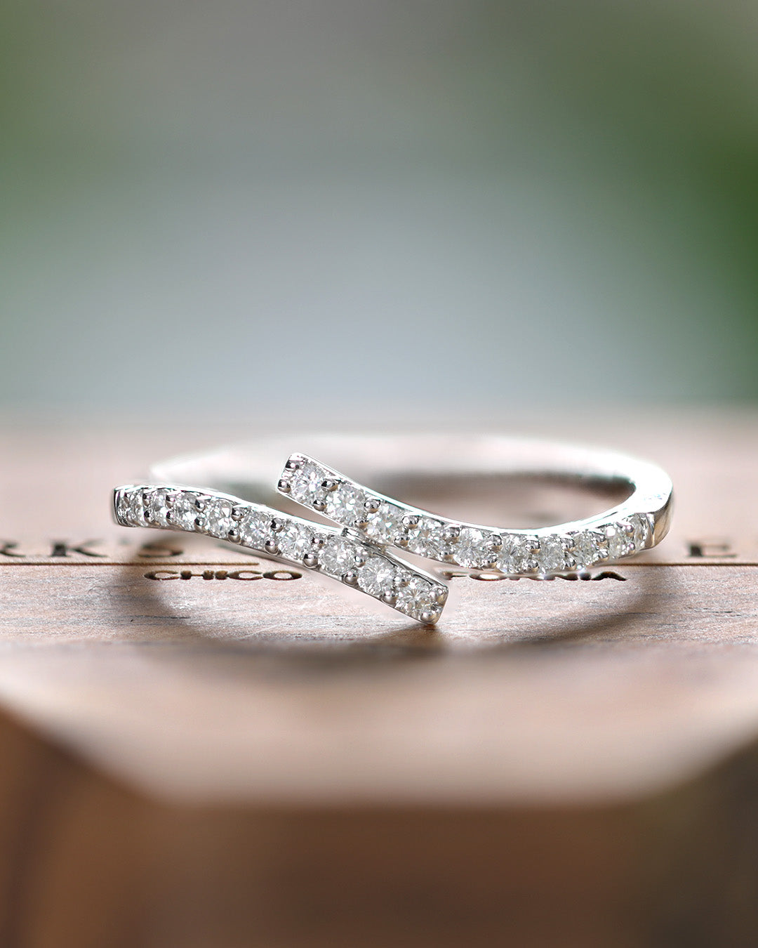This bypass diamond band features a clever split design. Twinkling diamonds line the curved shoulders, creating a dazzling effect that shifts with every movement. Whether you're stacking it with other rings or letting it stand alone, this playful yet polished piece adds just the right amount of sparkle and sass to your jewelry box.