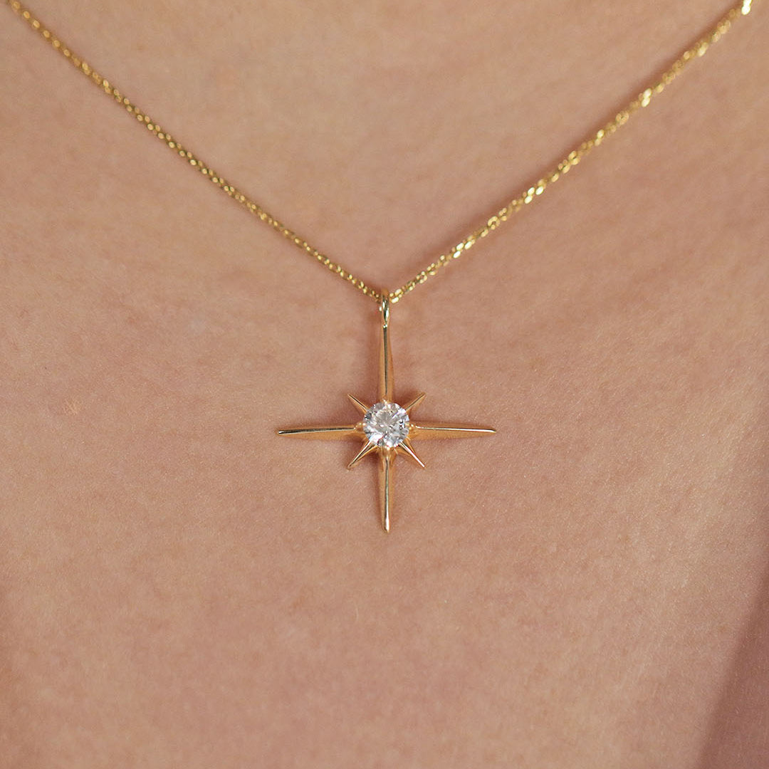 Bold Gold Solitaire Lab Created Diamond Necklace