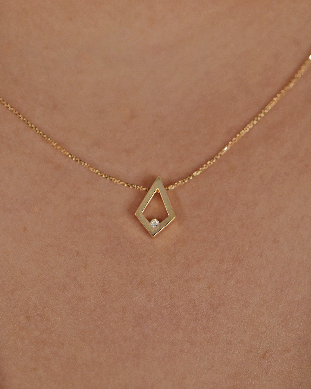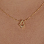 Discover understated luxury with this kite diamond necklace, where precision craftsmanship meets timeless design. The distinctive kite-shaped diamond is masterfully set in 18K yellow gold, its faceted geometry reflecting light with remarkable clarity and fire. Suspended from an elegant gold chain, this piece transcends trends while remaining effortlessly wearable. A testament to refined taste, it's the kind of jewelry that becomes a cherished heirloom, valued for both its beauty and enduring quality.