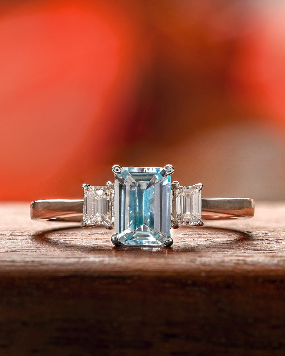 Aquamarine & Diamond Three Stone Ring