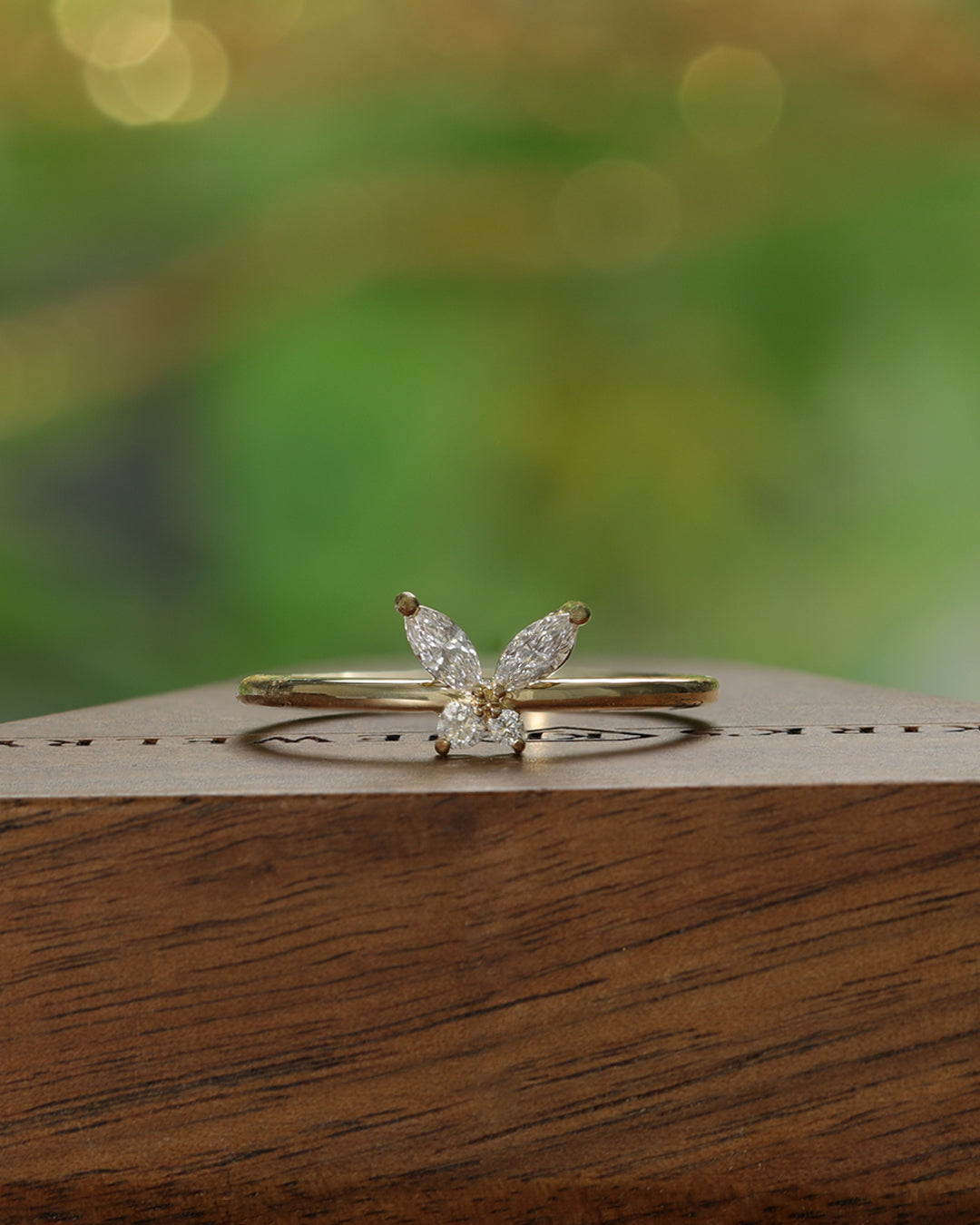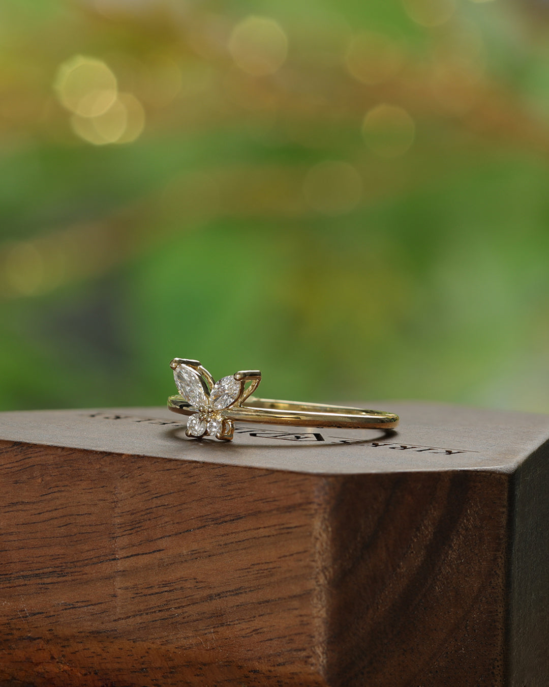 Brighten your day with the Butterfly Diamond Ring—a sparkling tribute to nature’s whimsy. With diamonds fluttering like delicate wings, this ring adds a playful sparkle that’s sure to catch eyes and smiles. Perfect for those who love a little magic and shine in their jewelry box!