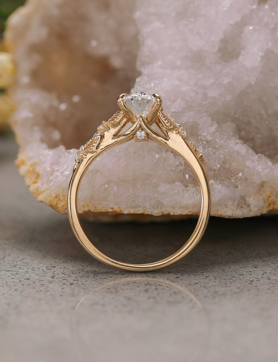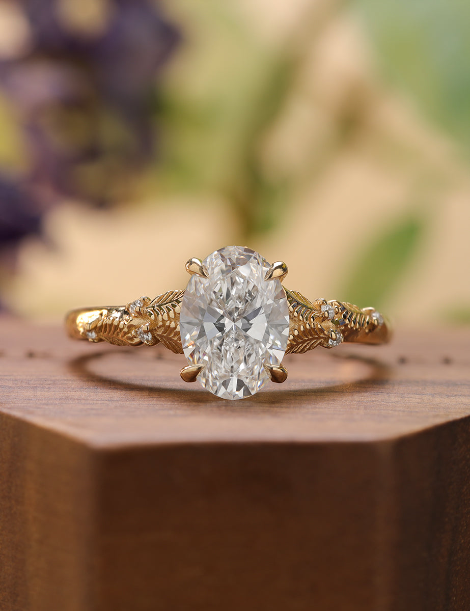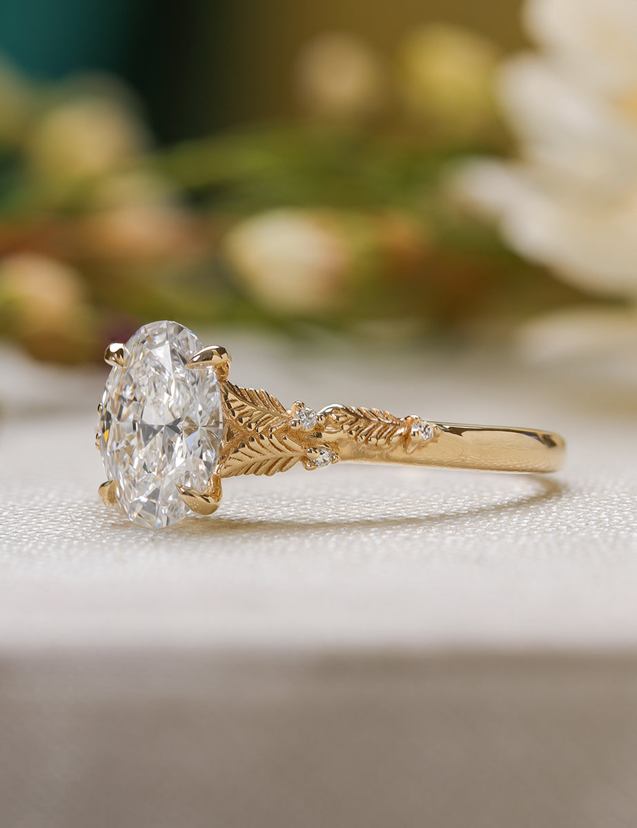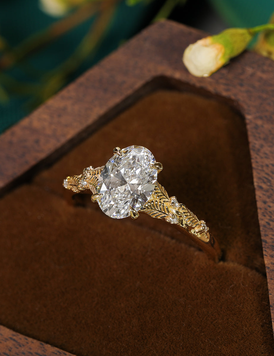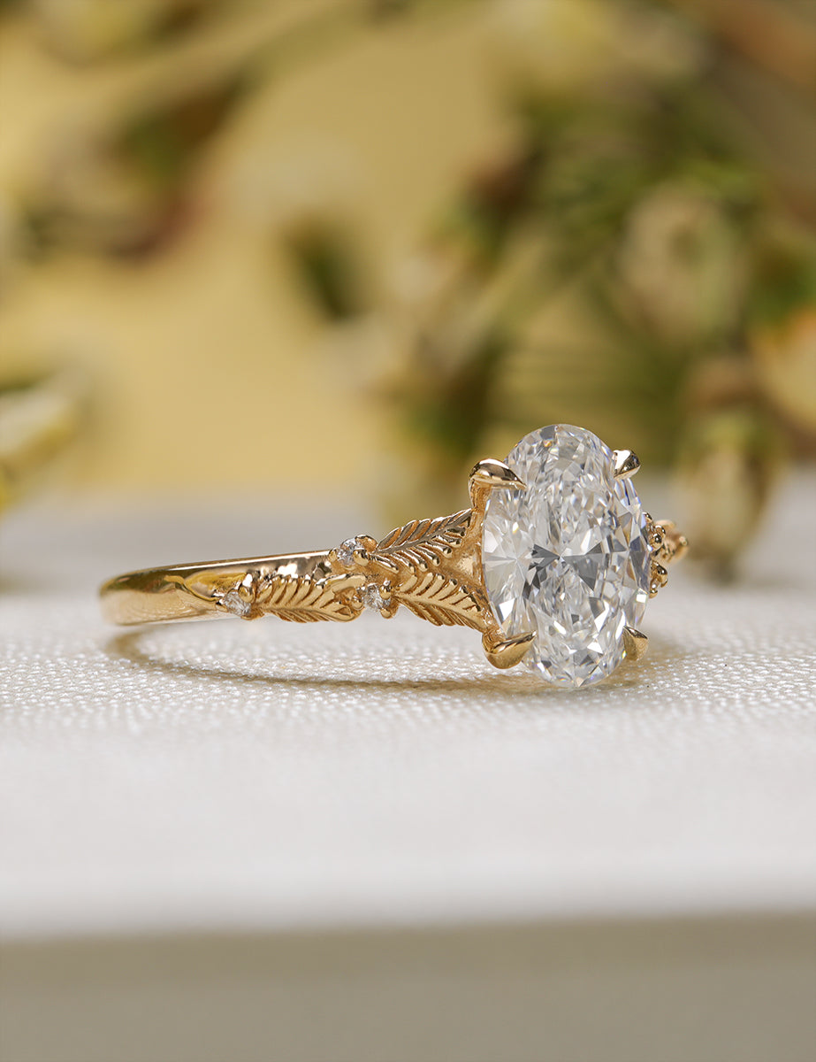 Experience timeless elegance with The Linden! This stunning piece features a sparkling oval diamond nestled within a delicate leaf design. Its unique shape and intricate details make it a must-have for any jewelry collection. Fall in love with its beauty and make a statement wherever you go.