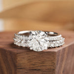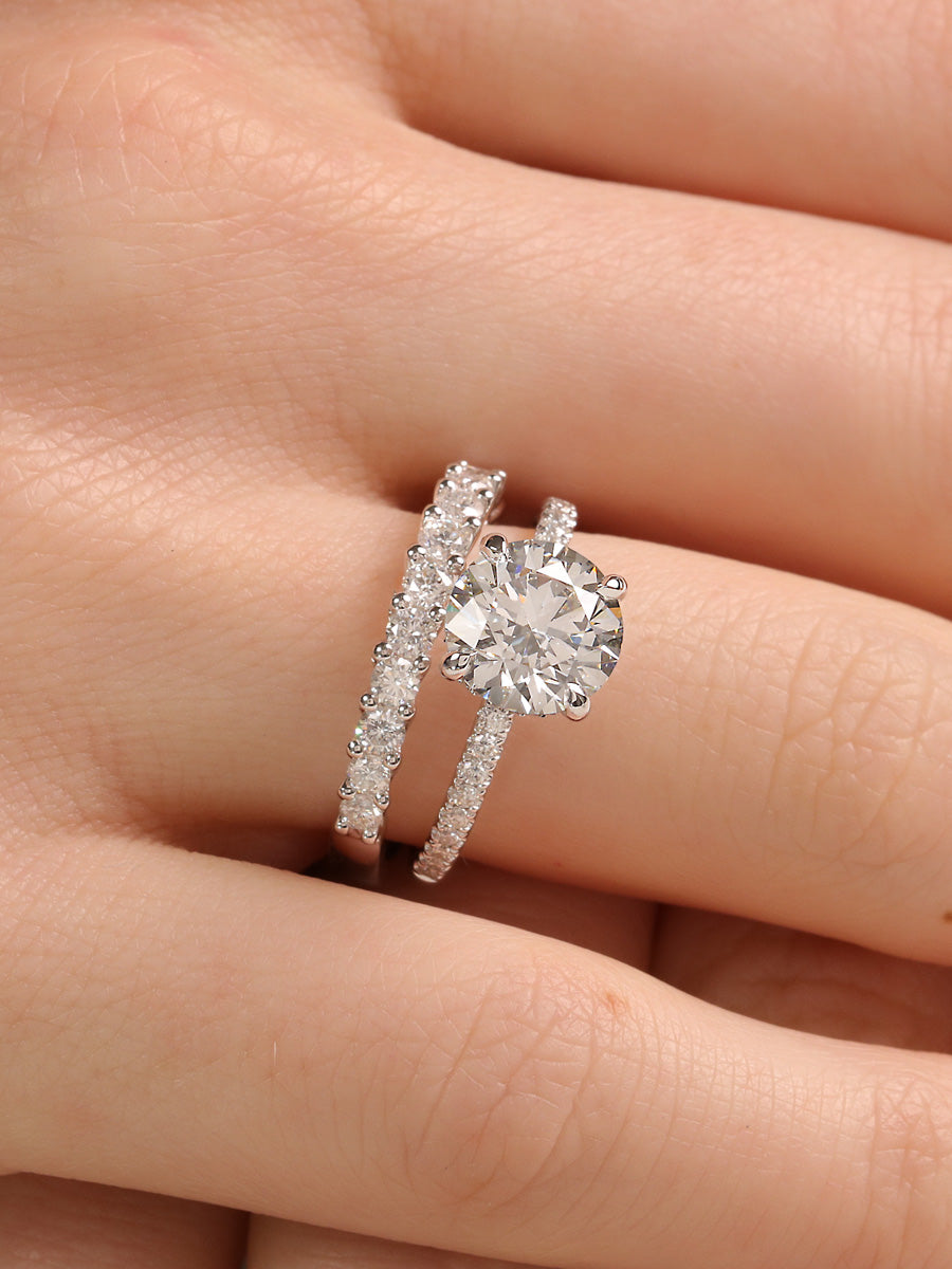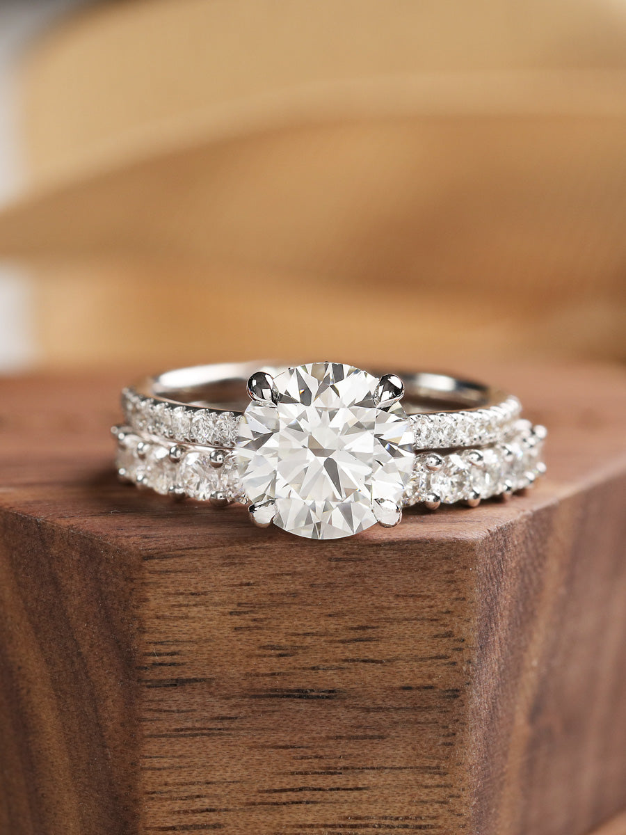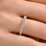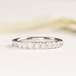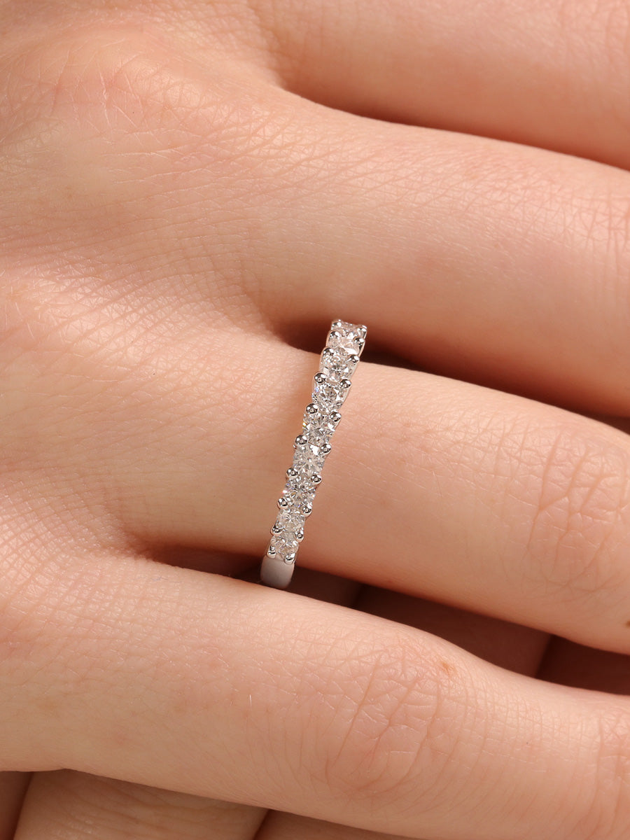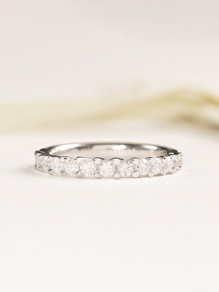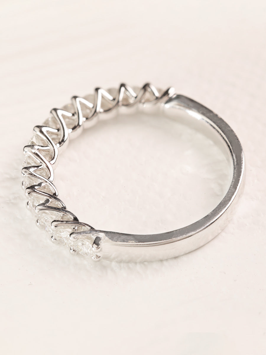 A unique scalloped side holds thirteen round diamonds in a graceful way.