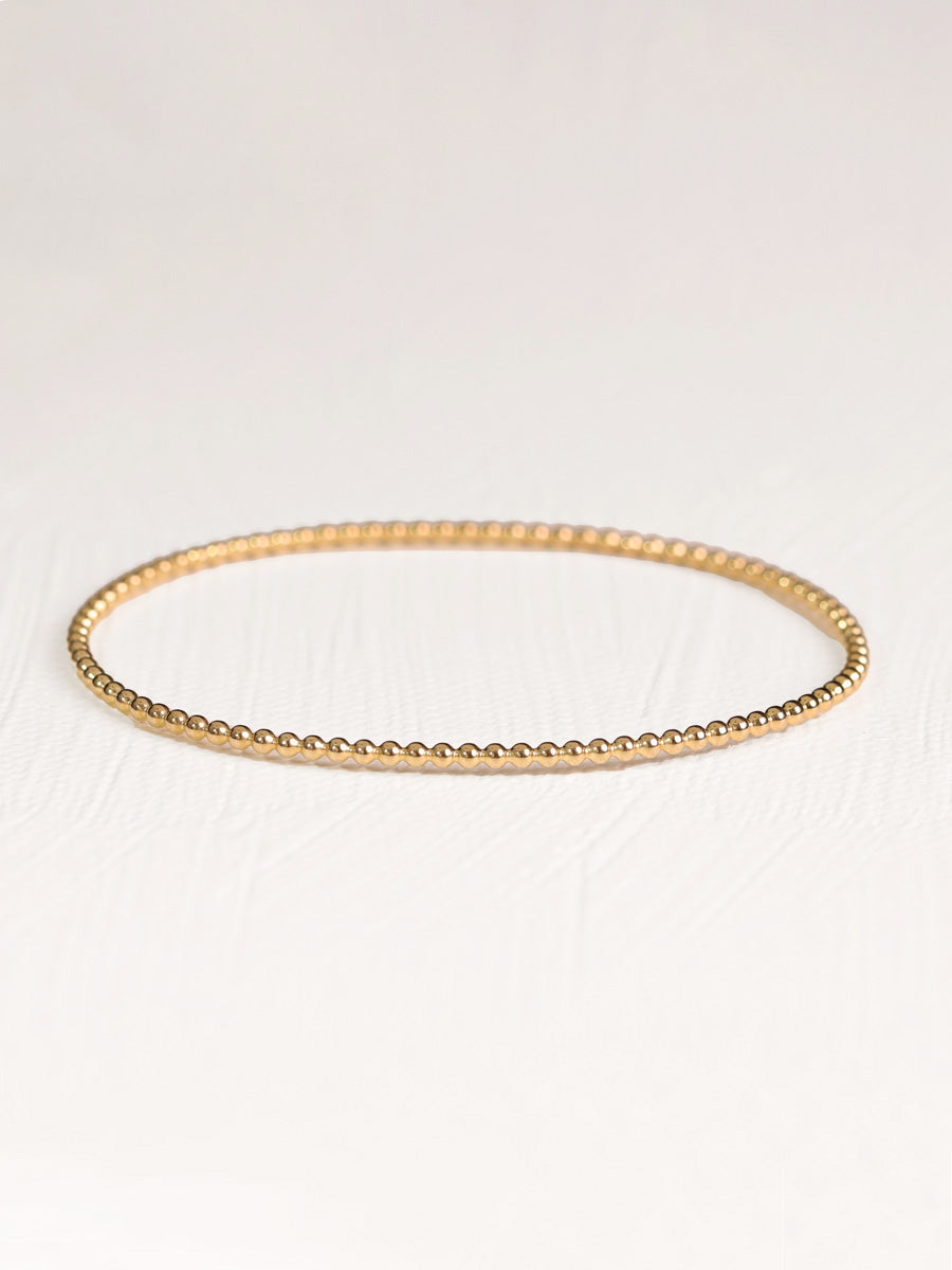 Experience the rich tradition of the gold bangle, handcrafted in Chico, CA. Create a meaningful journey through the years by adding a bangle for each anniversary or building a stack to display your unique story. The gentle tinkling of multiple bangles will accompany you on all your adventures!